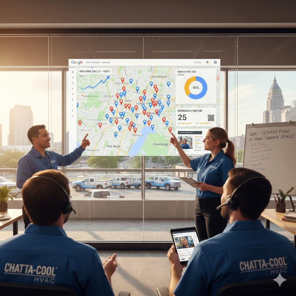 This scenario follows a residential HVAC company serving homeowners across Chattanooga and surrounding areas such as Hixson, Ooltewah, Red Bank, East Ridge, Cleveland, and nearby North Georgia communities. The company provided a full range of heating and cooling services, including air conditioning repair, furnace repair, system replacement, heat pumps, and seasonal maintenance.